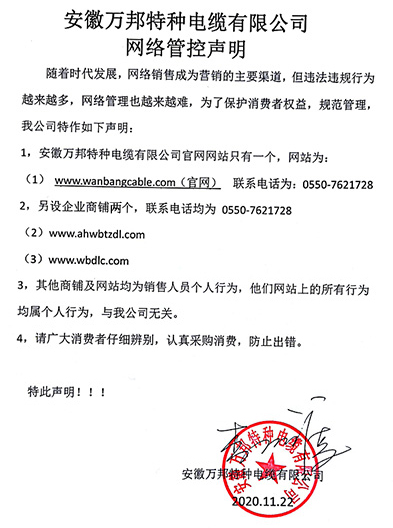 鄭重聲明:安徽萬邦特種電纜有限公司官方網站為:www_wanbangcable_com.lf-zhuangshi.cn,除此之外無任何子網站或合作網站,其余均為假冒偽劣。電話:0550-7621728 13485756353 地 址:安徽省天長市滁州高新技術產業開發區經四路29號